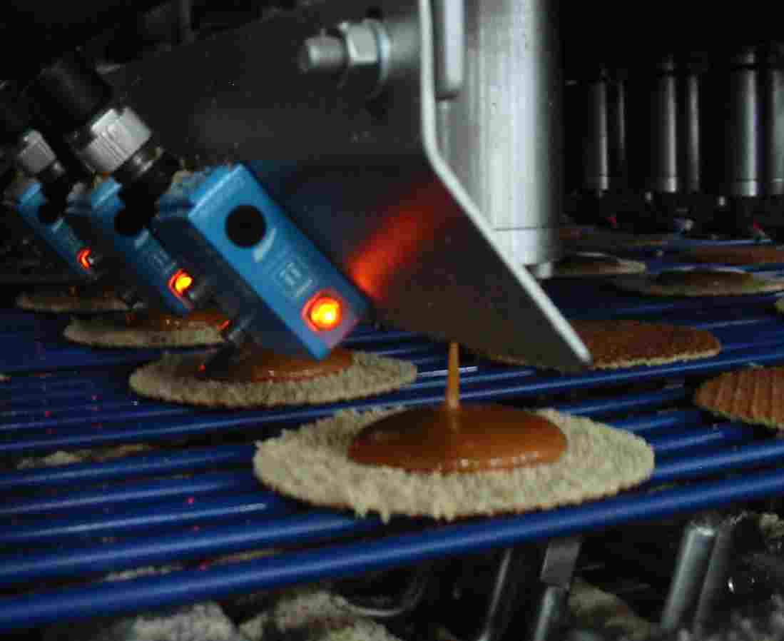 This depositor deposit right on the biscuit in accordance with the speed of the line.