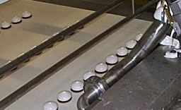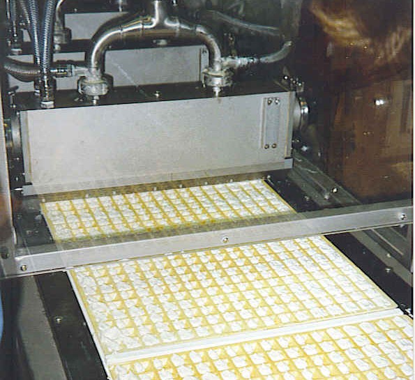 This depositor deposit right on the biscuit in accordance with the speed of the line.