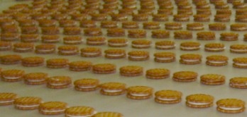 Deposit for cream on waffle, biscuit or crackers or for sandwich biscuit.
