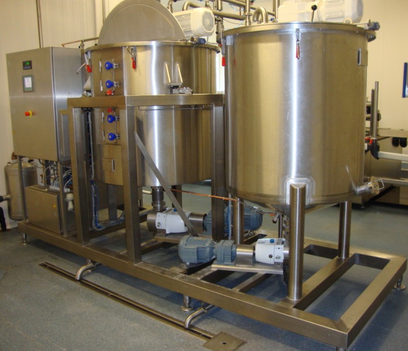 The Dough Cooking mixer is designed for industrial applications. This mixer has a automated filling “weight in loss” system, which allows the ingredients to be loaded in sequence in the right quantity. The recipe will take care of the right mixing. The integrated steam unit will deliver the right heat. The transfer pump will pump directly to the buffertank